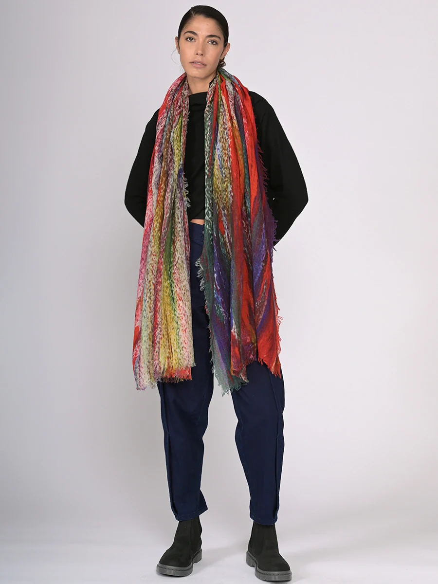 Fine Wool Print Scarf - Strokes of Colour