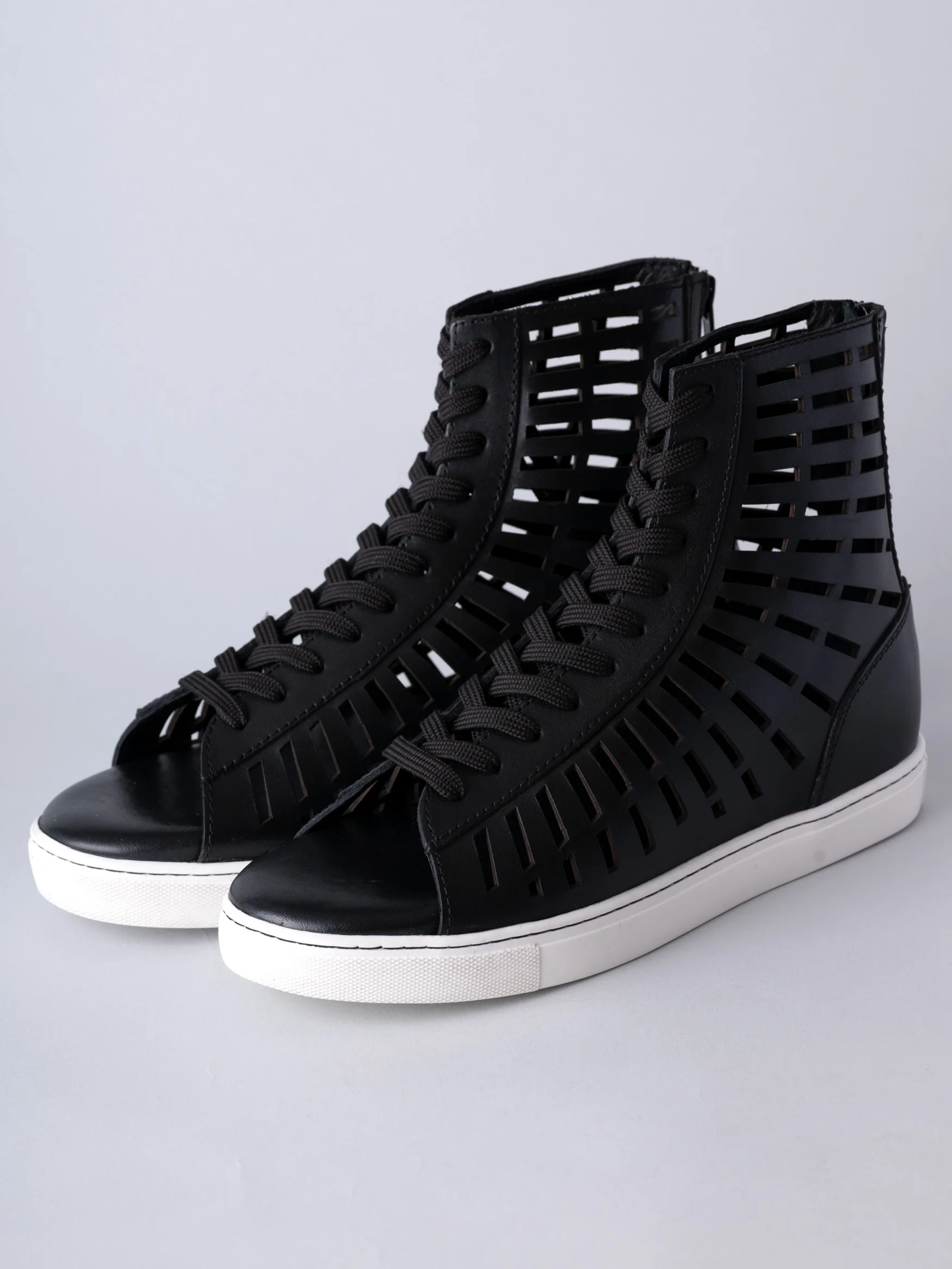 A hybrid between trendy high-top trainers and stylish gladiator sandals, Forgotten Tribes's first footwear features a platform TPR rubber sole, an intricate cutout pattern and laced up front. Carefully designed with practicality and comfort in mind, the sandals are kitted with YKK zip at the back and cushioned insole. A versatile footwear, can be styled with or without socks.