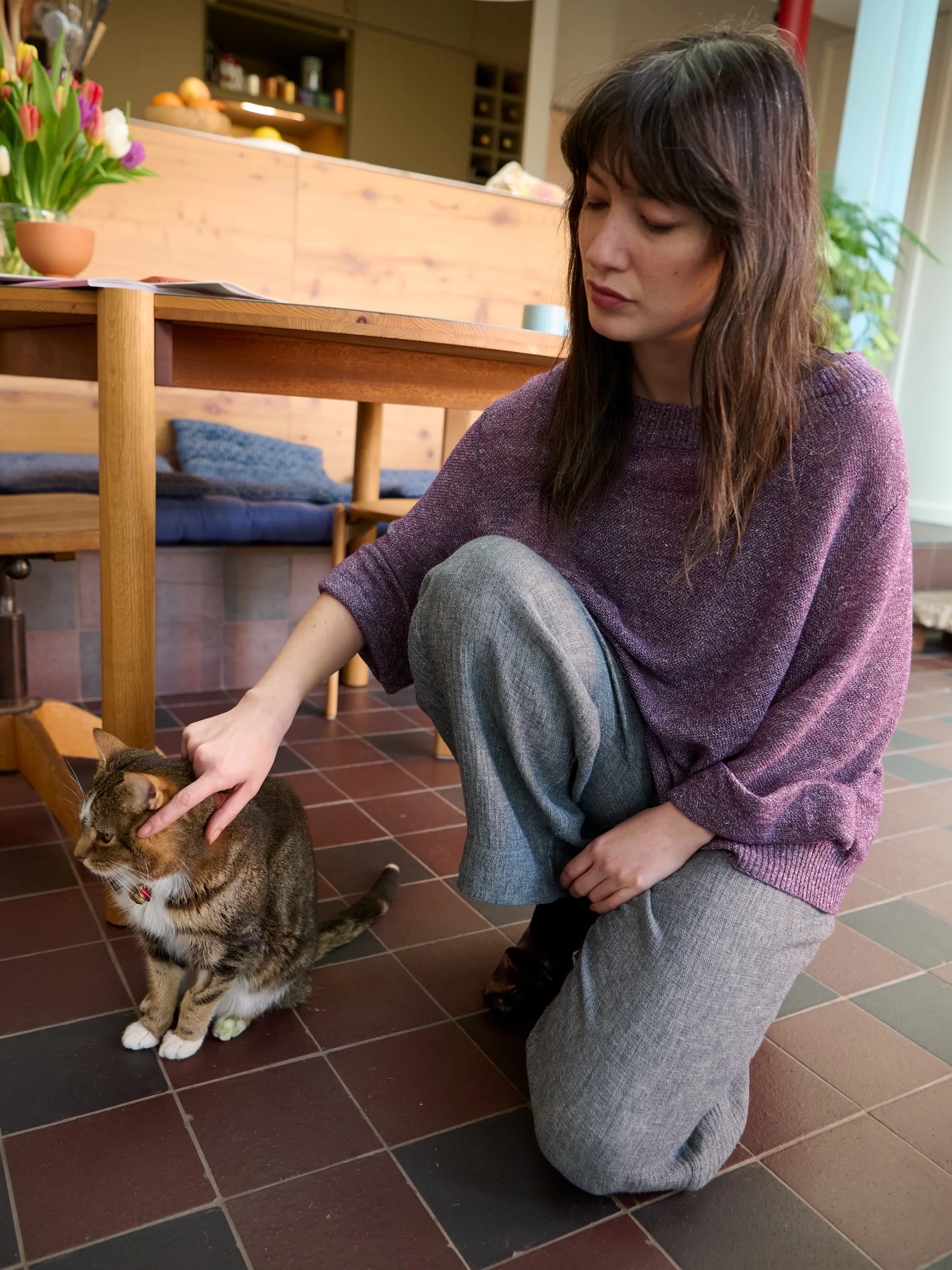 Hainan is a lightweight knitted top made from a premium linen-cotton marled yarn. Worked in a intricate honeycomb stitch, it has an airy, fluid feel with natural breathability and temperature regulation — ideal for warmer days. The open stitch gives a subtle, slightly sheer finish. Cut for an easy relaxed fit, it features a ribbed round neckline, wide sleeves and a boxy body.