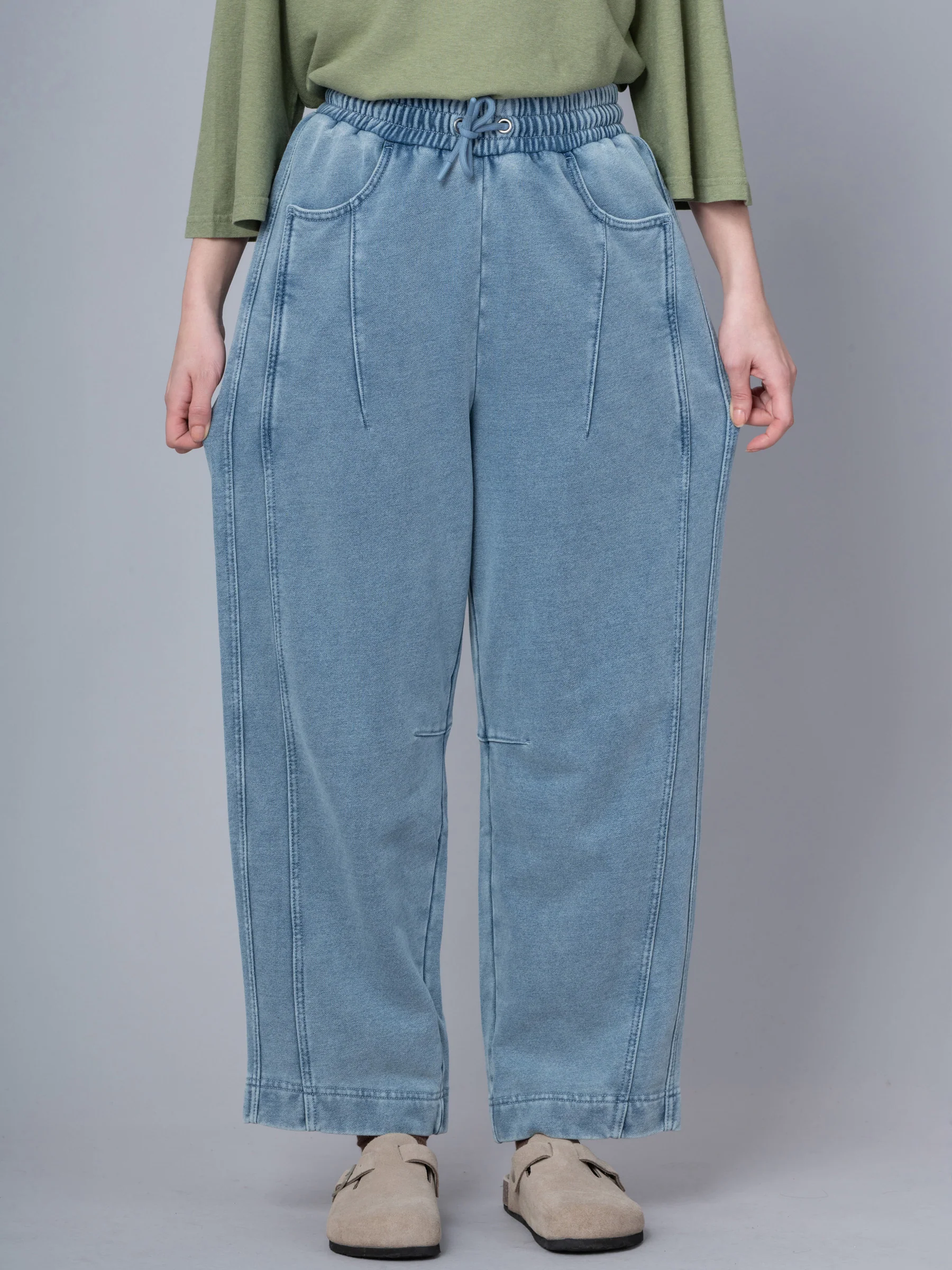 Paxi - Denim Wash French Terry Barrel Leg Trousers