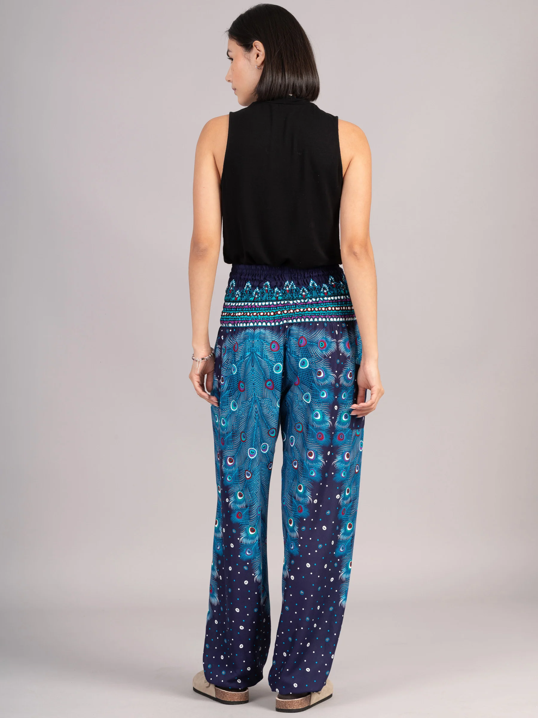 Beautifully soft and super comfortable, Harem Pants Original - Peacock Feathers High Crotch is made of 100% high grade rayon which is a natural, plant-based fabric. Highly breathable and flowy, it is ideal for wearing in hot climates, festivals, lounging, yoga & meditation. Equipped with wide elasticated waist and ankle bands, it provides amazing comfort and allow great body movement without restrains.