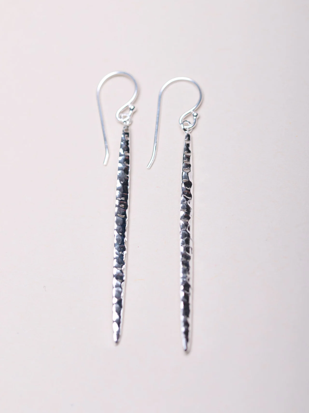 Sterling Silver Longline Hammered Earrings